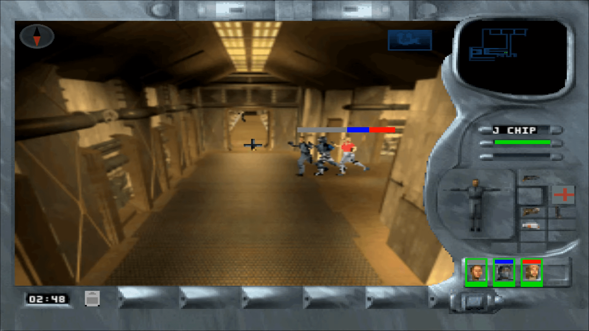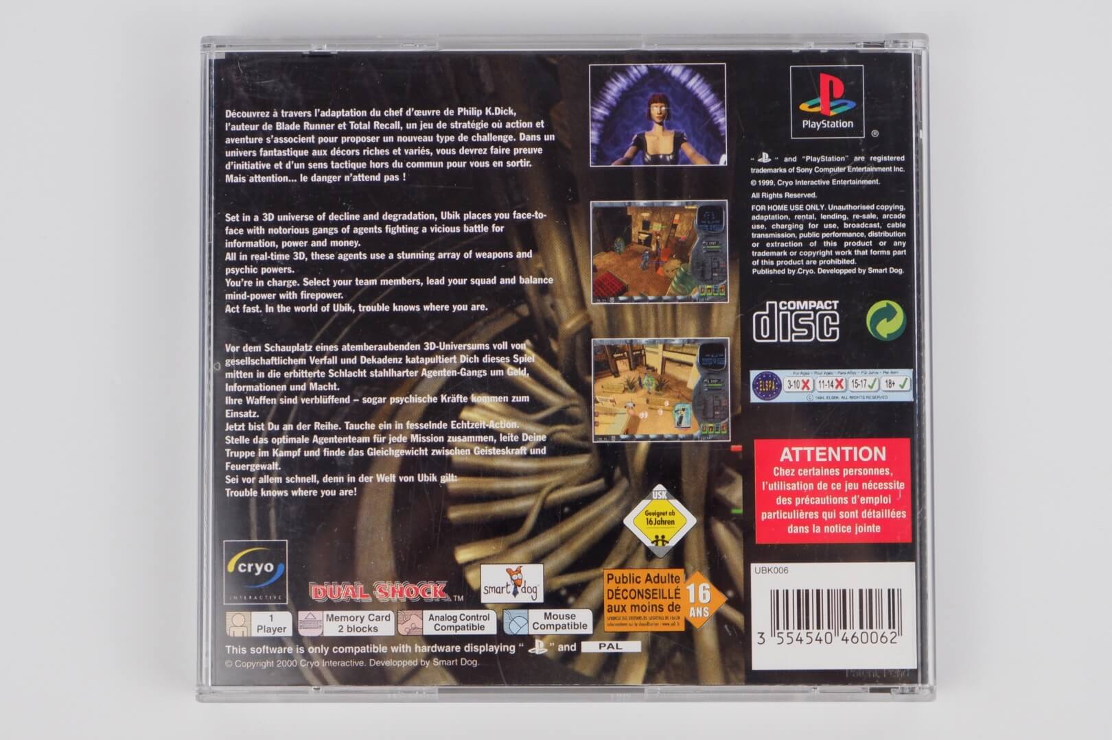 Ubik on the PlayStation is a real-time tactical action/strategy game, loosely based on the mind-bending 1969 Philip K. Dick novel of the same name. The story follows Joe Chip, a technician for Runciter Associates, a company specializing in anti-telepathic services and counter-psychic espionage, as he leads a squad of “inertials” and “psionics” against the rival Hollis Corporation in a dark, dystopian future. The plot is filled with the novel’s themes of paranoia, reality distortion, and death, though some critics felt the game didn’t adequately convey the book’s more complex, existential concepts. Gameplay involves real-time squad-based combat where the player selects, equips, and leads a team of four characters, balancing traditional weapons with various psychic abilities (PSI skills) across missions set in pre-rendered 3D backgrounds with multiple, user-controlled camera angles. However, the game’s reception on the PlayStation was overwhelmingly negative, with critics panning the extremely slow loading times, sluggish character movement, messy controls, and poor character AI, despite praising the atmosphere and the uniqueness of attempting to adapt the source material. While the original PC version was received moderately better, the console port is often cited as a technically flawed and frustrating experience.