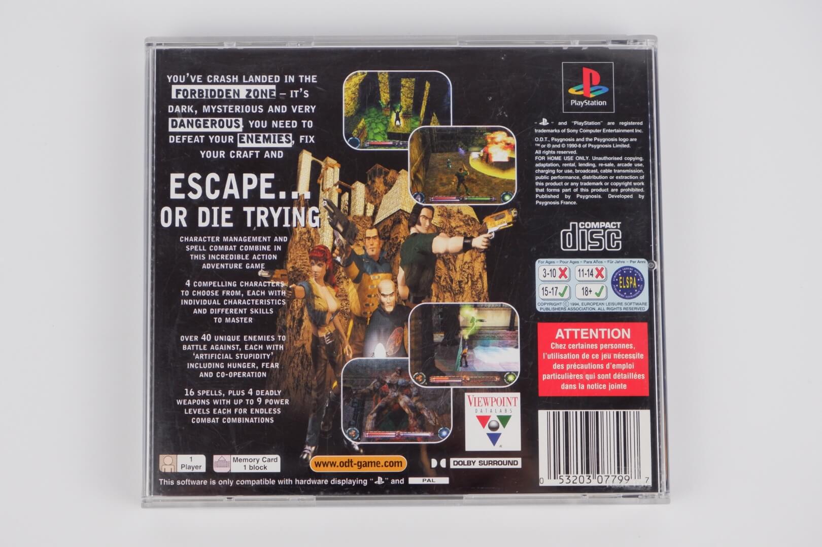 O.D.T.: Escape… Or Die Trying (1998, Psygnosis) is a third-person action-adventure game for the PlayStation with RPG and platforming elements. The story follows a crew from the airship Nautiflyus, which crashes into a mysterious tower in a forbidden zone while attempting to deliver a magical “Green Pearl” to stop a devastating epidemic. Players choose from one of four initial characters, each with unique stats in areas like armor, weapons, and magic, as they explore the strange, often Jules Verne-esque, 3D environments to find fuel for their ship and retrieve the pearl. Gameplay is heavily focused on exploration, combat using a mix of hand-to-hand, weapon-based, and magical attacks, and environmental puzzles, often drawing comparisons to Tomb Raider but with a heavier emphasis on character progression. Upon release, reception was generally poor to mixed, with many critics panning the game for its Tomb Raider-style controls, which were considered crude and imprecise, and for its sometimes unforgiving level design and difficult platforming, despite acknowledging the game’s ambitious graphics, atmospheric steampunk-like setting, and creative enemy designs.