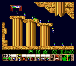 Lemmings on the Sega Mega Drive is a highly addictive puzzle-strategy game that challenges players to guide a horde of mindless, green-haired critters to safety across hazardous landscapes. The basic story is minimal, revolving around these adorable, but incredibly stupid, anthropomorphized lemmings who are migrating en masse and will walk blindly into environmental dangers like cliffs, traps, and pools of lava unless their path is altered. The core gameplay involves selecting one of eight limited-use skills—such as Climber, Floater, Digger, Builder, or Blocker—and assigning it to an individual lemming to clear obstacles or create safe passages toward a designated exit. The Mega Drive port, developed by Sunsoft, was well-received for providing a largely faithful rendition of the classic Amiga game, with its own unique features, including a high number of exclusive levels (180 in total across various difficulties) and a competitive two-player mode, cementing its reputation as a solid and enjoyable console version of one of the early 90s’ most successful and influential puzzle games, despite some minor issues like occasional slowdown and missing sound effects from the original.
