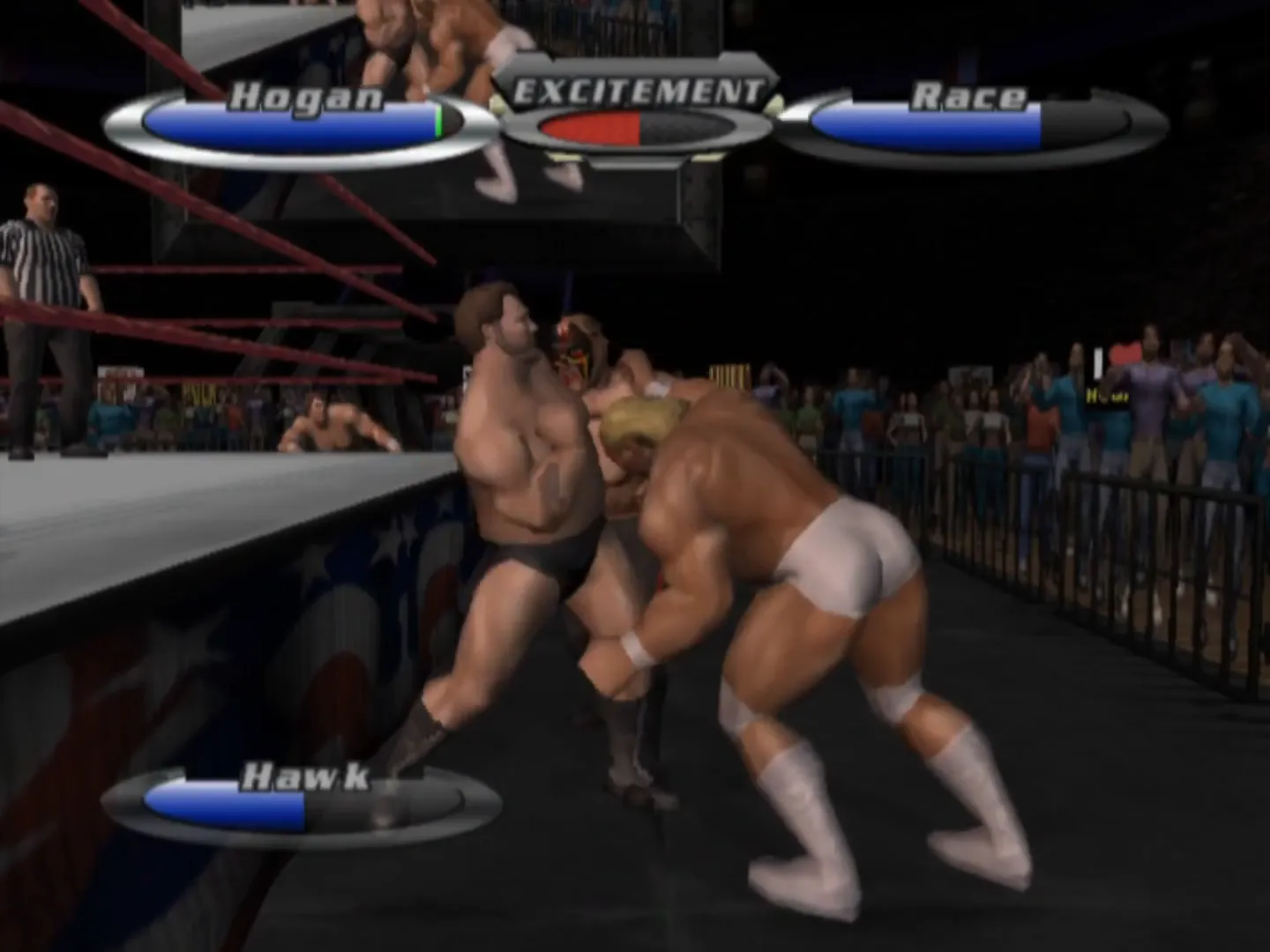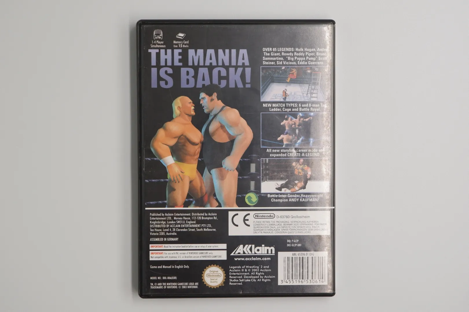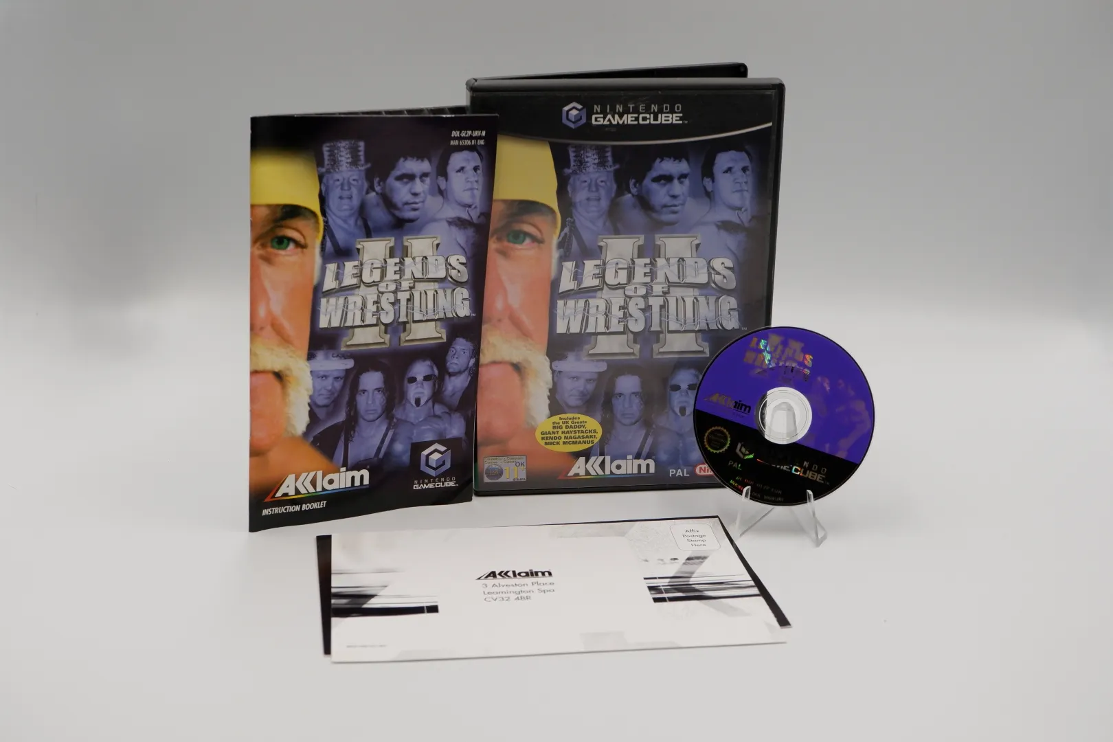 Legends of Wrestling II for the Nintendo GameCube is an arcade-style wrestling title that celebrates the icons of the 1970s, 80s, and 90s, featuring a massive roster of over 65 legends including Hulk Hogan, Andre the Giant, and Bret Hart. The game’s story centres on an expansive “Career Mode” where players travel across five distinct wrestling territories, working for different promoters and engaging in randomly generated storylines to unify regional belts before challenging for the World Heavyweight Title. Its gameplay utilizes a unique “linked” grappling system and an “excitement meter” that rewards players for performing varied, high-risk moves rather than simply winning quickly; however, it was criticized for clunky movement controls and a frustrating button-mashing mechanic for kicking out of pins. Reception on the GameCube was generally mixed; while fans appreciated the deep nostalgia, historical interviews, and the “modern-retro” deformed art style, many critics felt the technical execution and AI were unpolished compared to contemporary titles like WWE WrestleMania X8 or the AKI-developed classics.