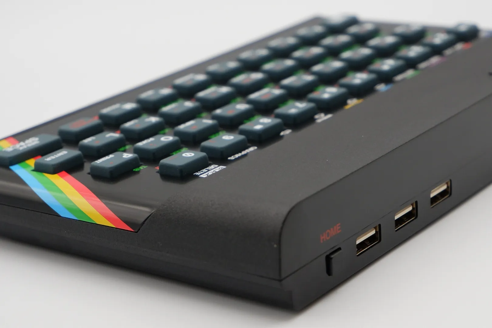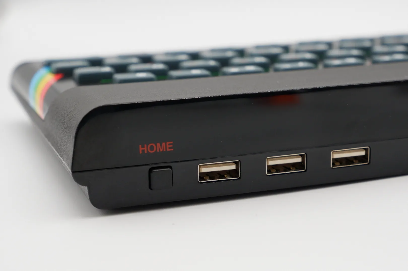 Released on November 22, 2024, The Spectrum by Retro Games Ltd and PLAION is a modern, full-size recreation of the iconic 1982 Sinclair ZX Spectrum 48K. Designed to evoke maximum nostalgia, it faithfully replicates the original hardware’s aesthetic, including the famous “rainbow” motif and the distinctive “chiclet” rubber keyboard that defined British computing in the 1980s. Unlike the original, which relied on cassette tapes and RF-out to a television, this version features modern conveniences such as 720p HDMI output at 50/60Hz, four USB ports for controllers, and a USB-C power connection.