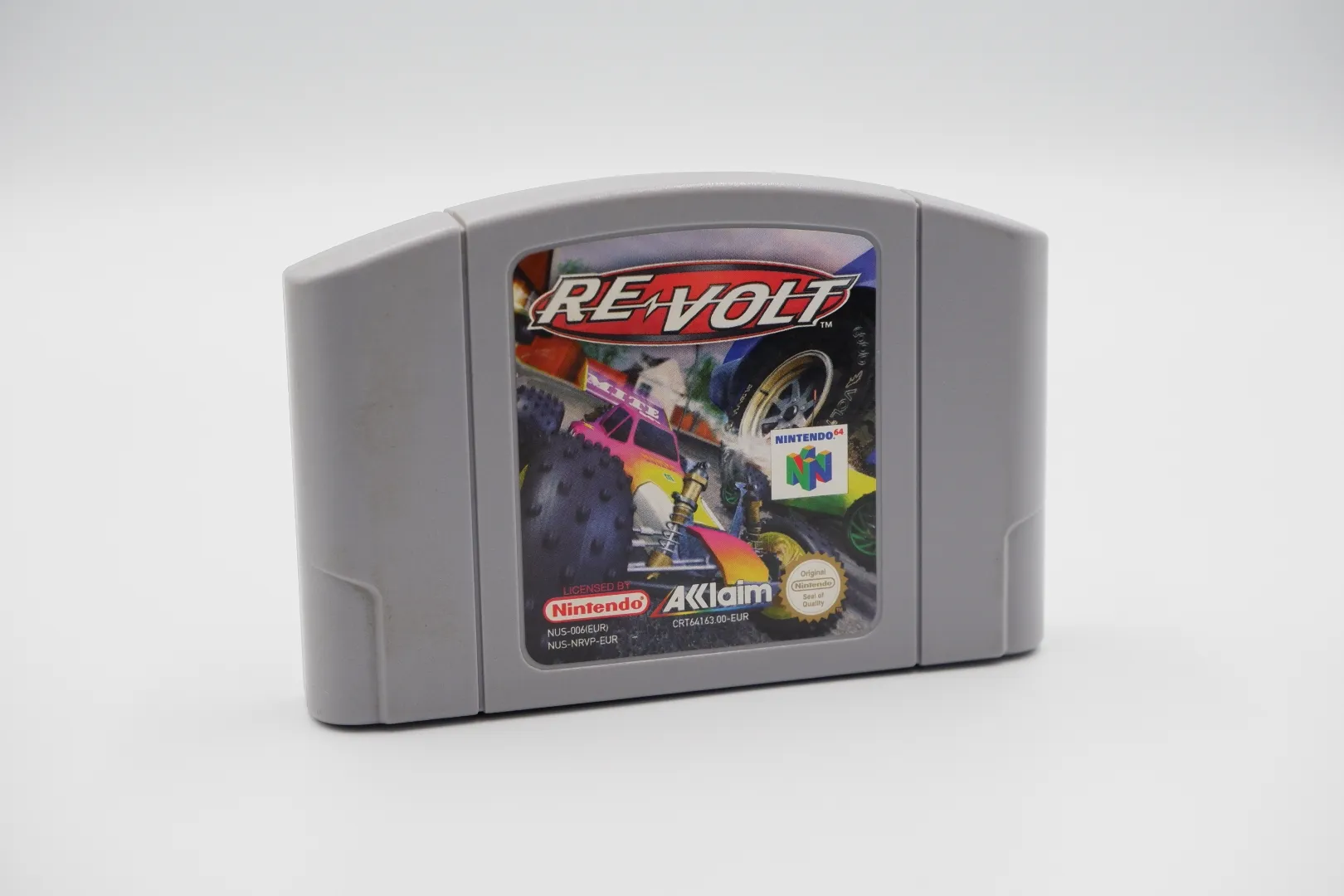 Re-Volt is a radio-controlled (RC) racing game for the Nintendo 64 that eschews a traditional narrative in favour of a mischievous premise: a fleet of RC cars has gained a spark of sentience and escaped the toy shop to turn the real world into their personal playground. Players navigate “toy-sized” perspectives through oversized environments like supermarkets, museums, and construction sites, utilizing a physics engine that emphasizes the lightweight, bouncy nature of remote-controlled vehicles. The gameplay blends high-speed racing with combat, featuring a variety of power-ups—such as bottle rockets, oil slicks, and water balloons—to disrupt opponents across several modes, including Championship, Time Trial, and a 4-player multiplayer mode. While the game was praised for its creative track design, detailed 3D models, and catchy techno soundtrack, the Nintendo 64 port received a mixed reception compared to its PC and Dreamcast counterparts. Critics often pointed to a frustratingly inconsistent framerate and “twitchy” analogue controls that made the cars prone to spinning out, though it remains a nostalgic cult classic for its unique charm and challenging difficulty.